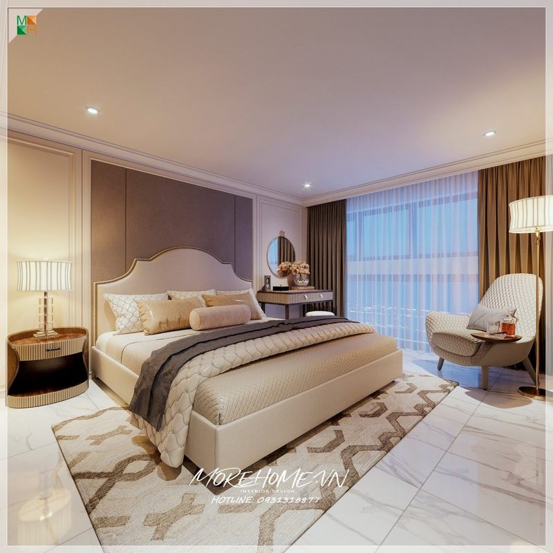 >> Có thể nói, thiết kế nội thất tân cổ điển là một trong những dịch vụ hàng đầu của thương hiệu Nội thất MOREHOME, khởi đầu với ấn tượng đột phá trên thị trường khi có rất nhiều công trình được đánh giá cao ngay từ thời điểm xuất phát như: Keangname, Times City, Royal City, Vinhomes Riverside,... Nếu quý vị có nhu cầu về phong cách thượng lưu này, hãy liên hệ với chúng tôi để chuyên gia tư vấn.